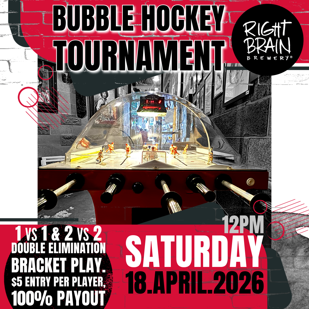Get ready to drop the puck! Join us for an action-packed Bubble Hockey Tournament on Saturday, April 18th, starting at noon. Whether you're flying solo or teaming up with a partner, there's a bracket for you.
